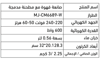 صانعة قهوة مع مطحنة مدمجة MJ-CM6689-W