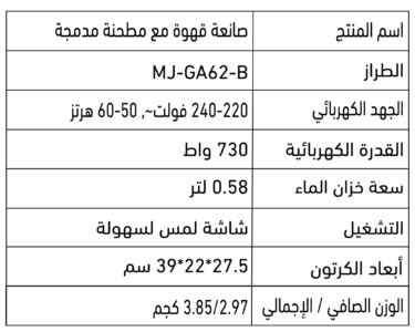 صانعة قهوة مع مطحنة مدمجة MJ-GM62-B